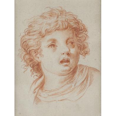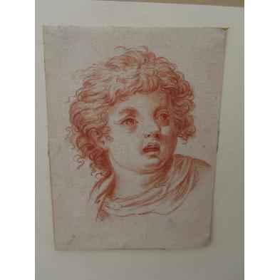 Sanguine on laid paper, unsigned, matted and framed under glass; the gilt and compositional ornament frame marked with AJH in an oval. Sheet 6.25 x 4 5/8 in.; DOA 15.5 x 12.5 in.