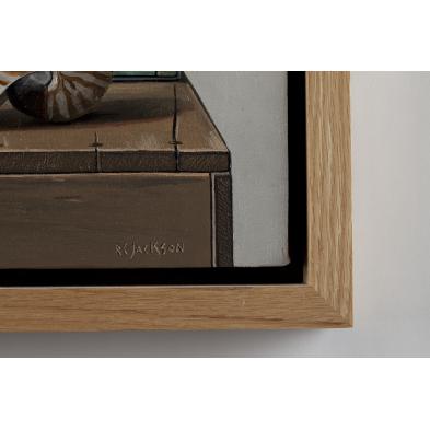 Oil on canvas, signed at lower right "R. C. Jackson," titled and inscribed on cardboard backing, in maple frame.