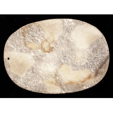 Qing Dynasty, mottled gray-white jade somewhat abstractly carved with dragons, each pierced for suspension.