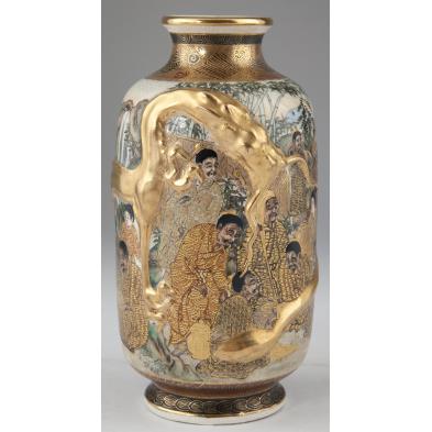 19th century, a vase with gilt relief decoration (6.25in.); (2) small dishes with scalloped rims (5 in.); (2) dishes decorated with figural garden scenes (8.5 and 6 in.) All pieces with signature to underside.