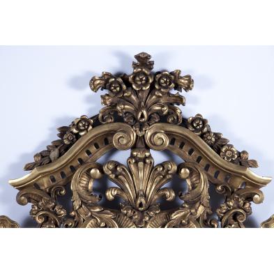 Loss of some carved elements; expected cracks to gesso; later mirrors.