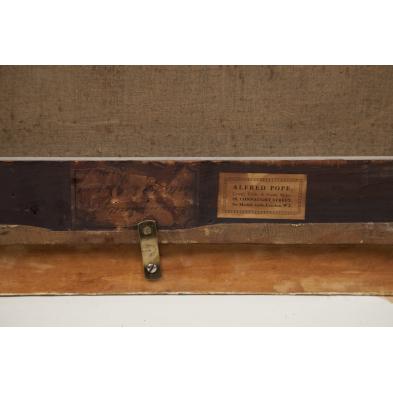 Oil on canvas, unsigned, retaining an old handwritten label on the verso reading "Kenneth Maclley (sic) / (illegible) / Portrait of Mis Grantworth / (illegible)," a charming portrait of a young girl seated on a rocky ground, she holds a doll in one hand and a single rose in the other, housed in a later frame, also retaining a frame maker's label for Alfred Pope in London on the lower stretcher.