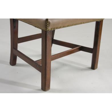 (4) 19th century and (2) later bench made, each chair with four pierced ribbon crossbars, over upholstered seats, square legs with chamfered inner edges and cross stretcher base.