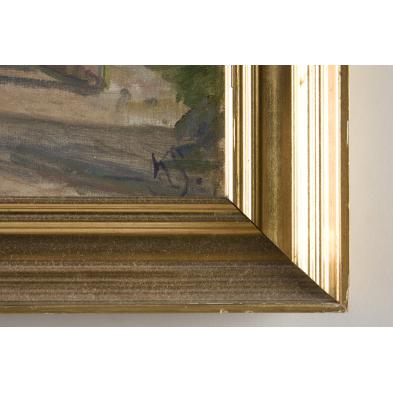 Oil on canvas, initialed lower right "KS," inscribed on the stretcher "Knud Sinding Vei i. Dalby (illegible) / Sommer 1917," housed in a period (likely original) gilt frame.