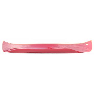 Southmont, NC., hand-made of pine with mahogany trim, red fiberglass exterior, made for Bob Timberlake with BobTimberlake brand signature quill, closed mahogany gunwales, two thwarts and deeply shaped yoke are also mahogany. Included in the lot is an oar with Bob Timberlake original fishing fly.