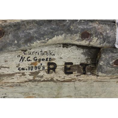 Currituck, angular body, the snake head with highly arched neck, realistic paint, lead weights to the underside, Bob Timberlake Collection stamp.