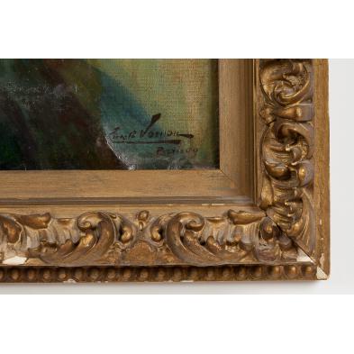 Oil on canvas, signed and inscribed at lower right "Emile Vernon / Paris '09," the verso with Sennelier of Paris stamp, presented in an antique gilt composition frame.