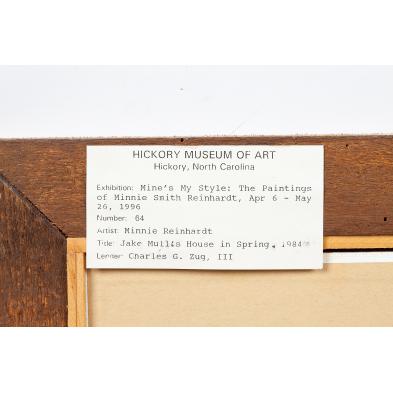 Exhibited: ÒMineÕs My Style: The Paintings of Minnie Smith Reinhardt,Ó Hickory Museum of Art, April 6-May 26, 1996.