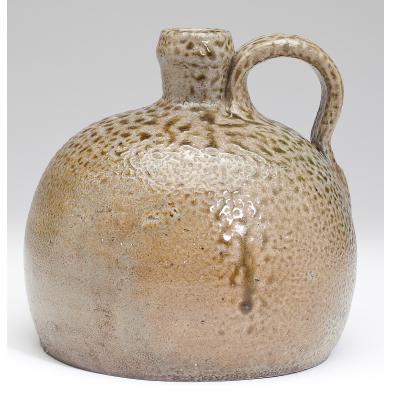 Salt glazed stoneware with J. F. Brower Masonic stamp to the right of the handle and with stamped capacity of 1/2 as well, turned by Himer Fox for the merchant John Brower.