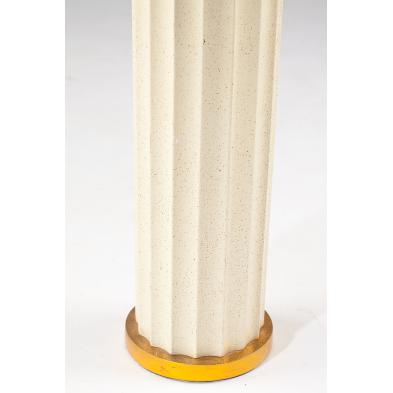 Designed as a classical column pedestal with gilt decorated egg, linen shade