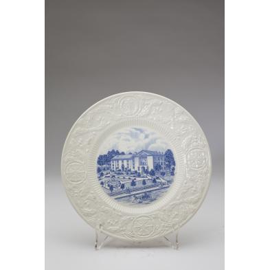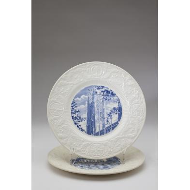 The School of Medicine plate with large flake on the underside; the East Duke Building plate with old glued chip to rim; all with crazing and some scattered staining.