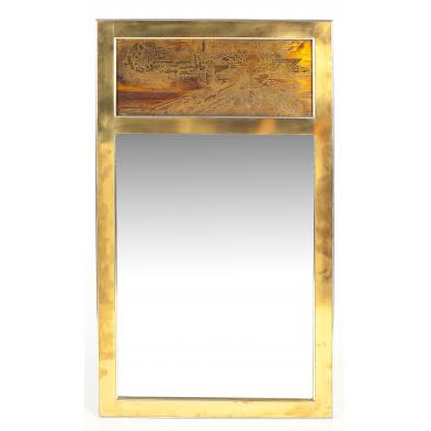 (American, 20th century), for Mastercraft, etched brass panel over beveled mirror.