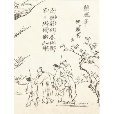 Various subjects include avian themes, Hotei on a donkey, a hunt, wayfarers and a still life. Each print is under a mat tipped to a sheet carrying manuscript artist and date information. All mounts are also hand-stamped with "Genuine" in English and Japanese. Presented in a Japanese board portfolio, which may or may not be original to the set.