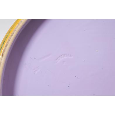 19th century, ribbed and domed cover with large finial, conforming underplate, both with lavender interior, both stamped "Brownfield" and "Cheddar."