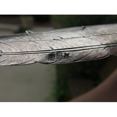 Detailed in design with individual etched feathers and features, hollow body with removable heads, each with three hallmarks to tail, likely .800 silver.