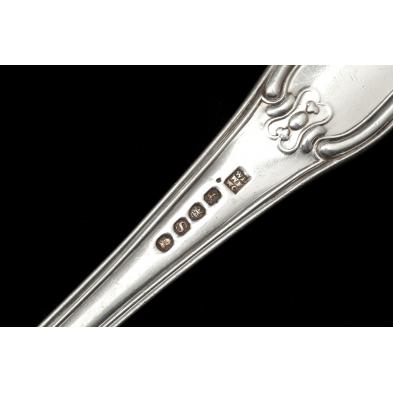 The first a soup ladle with London (1813) hallmarks and maker's mark for William Eley, William Fearn & William Chalmer, period engraved crest to handle (13 in.; 8.55 troy oz.); the second a stuffing spoon with London (1824) hallmarks and sponsor's mark for William Chawner, monogram removal to terminus (12.5 in.; 6.75 troy oz.); the third a sauce ladle with London (1829) hallmarks and William Chawner's sponsor's mark (7.25 in.; 3.1 troy oz.).