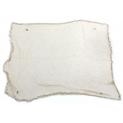 Custom made maple frame, areas of which have strong figuring, with tapered octagonal paneled posts, full tester, shaped headboard, and rails authentically drilled for rope attachment. DOA 75.5 x 74.4 x 79 in.; Inside 70 x 73 in.; height to bottom of rail 14.5 in. This is a king size bed. Included in this lot is a (3) part blue and white fabric bed skirt and a net tester.