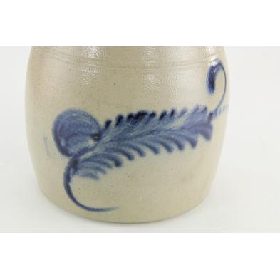 Late 19th -early 20th century, incised ring decoration and cobalt decorated with a large stylized feather below the spout, impressed capacity mark "2".