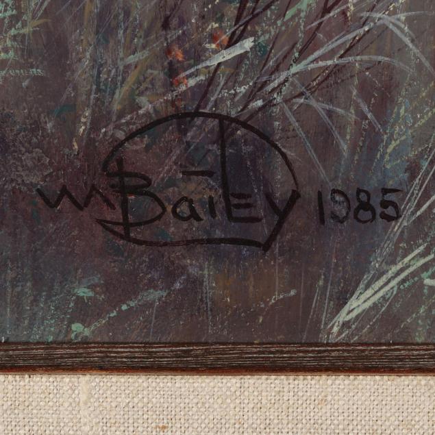 Oil on board, signed and dated 1985 at lower left, presented in a handsome walnut frame with linen liner and gilt filet.