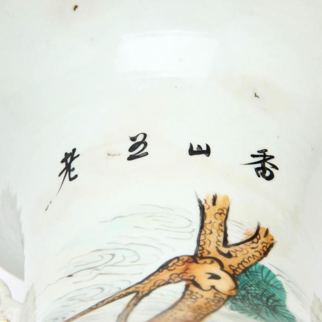 Circa 1900 or earlier, hand painted with scholars reading a scroll, double handled with gilt decoration, character marks to back.