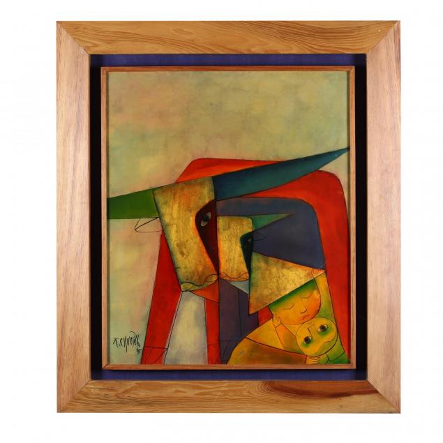 20th century, mixed media on panel, signed X. Chuong 95 lower left, presented in wooden frame.