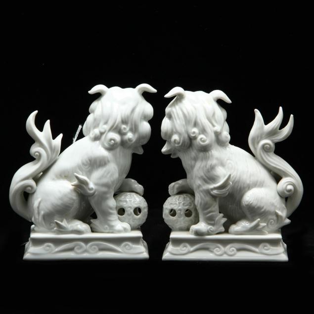 Pair of Chinese Blanc-de-Chine Guardian Lions