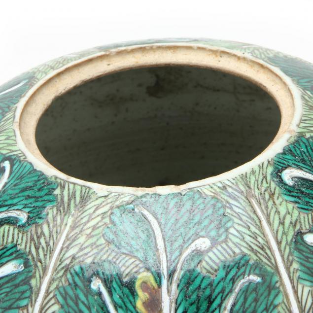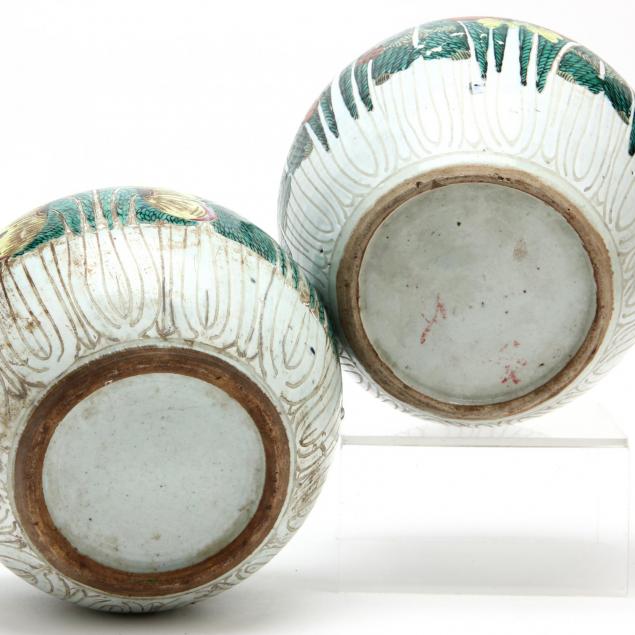 Pair of Chinese Export Porcelain Cabbage Leaf Ginger Jars