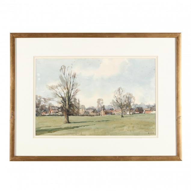 Each signed KWP, two landscapes and two continental village scenes, matted and presented in matching frames.