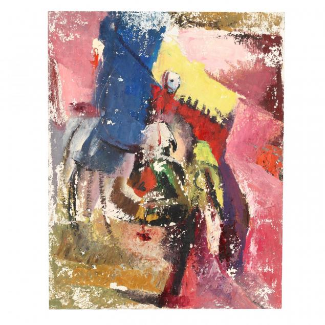 Summer 1954 / Montoya hill / rhythm of earth & sky, retaining a gallery label listing the title as "New Mexico rhythm #3" and with Stevenson's Brooklyn, NY gallery address (DOA 20 x 24 in.) (several paint flakes); the second an oil on plywood panel labeled "Place of the shrine summer '57, unsigned (DOA 24.5 x 24.5 in.); the third an oil on canvas board inscribed