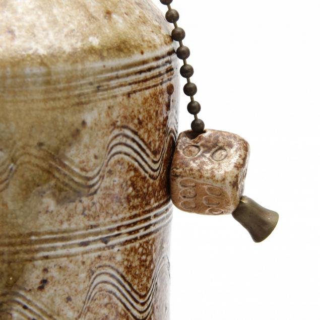 Stoneware, both with a similar incised line and wave decoration, impressed stamp on the bottom; with shades.