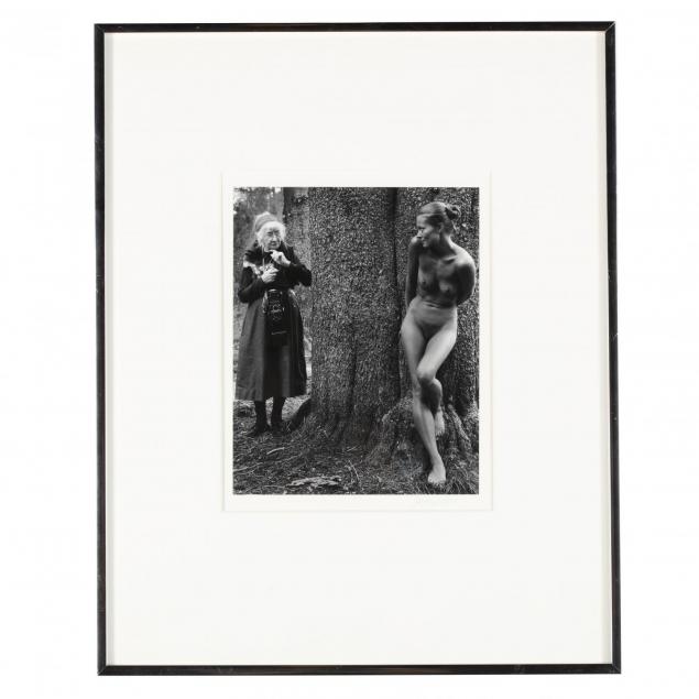 This is Dater's best known photograph - depicting the elderly Imogen Cunningham, one of America's first woman photographers, coming across a young nymph, the model Twinka Thiebaud, in the forest at Yosemite. This photograph was published in