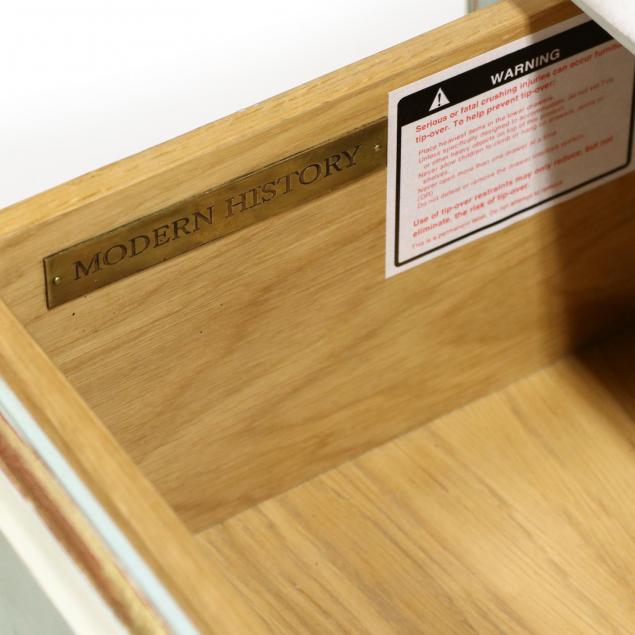 Contemporary, green and cream paint, faux marble molded top over three drawers, gilt highlights and hardware, raised on scrolled feet.