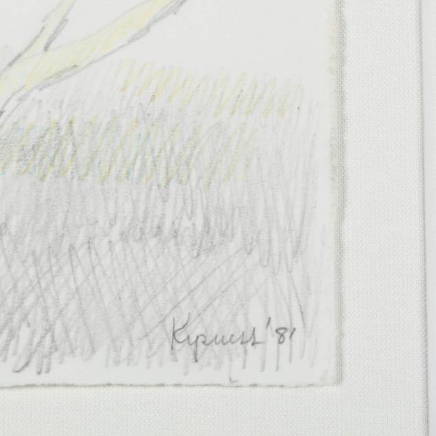 Colored pencil and graphite on paper, signed and dated 1981 at lower right, matted and framed under glass.