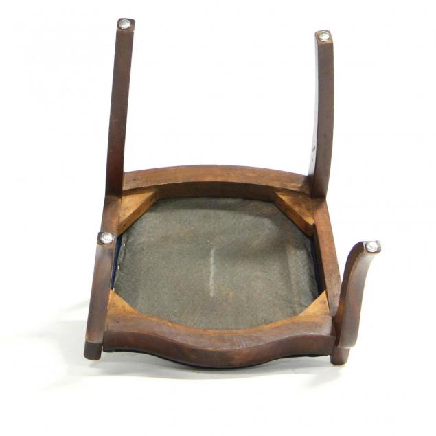 19th century, mahogany, mahogany veneer, shaped crestrail with carved rose, vasiform backsplat, serpentine slip seat, raised on sabre legs.