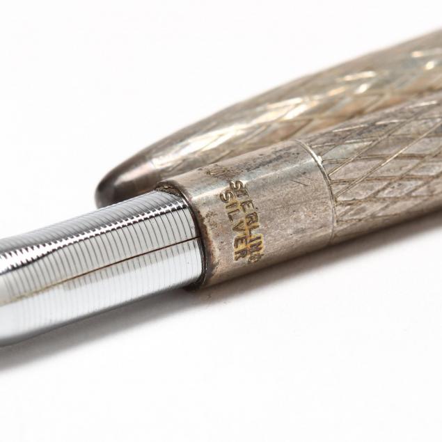 Mid 20th century, including a Tiffany & Co., sterling ball point pen and a silver filigree compact with illegible hallmark.