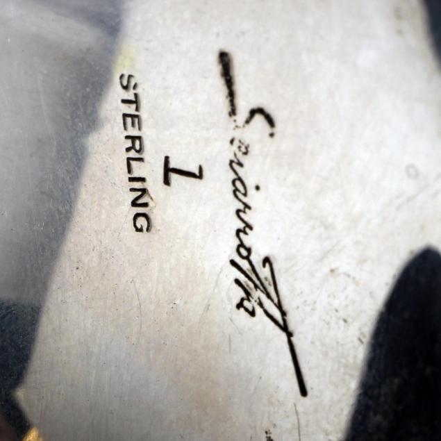 Including (5) open twist serving implements by Frank M. Whiting and a leaf form bowl by Alfredo Sciarrotta of Newport, RI.