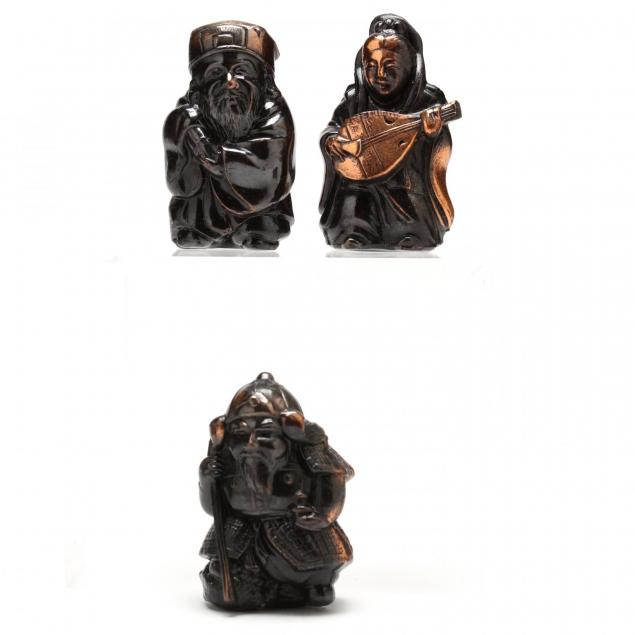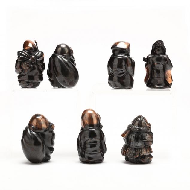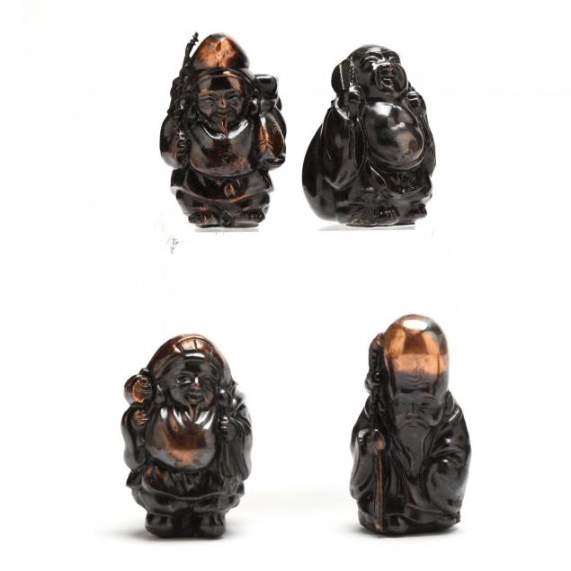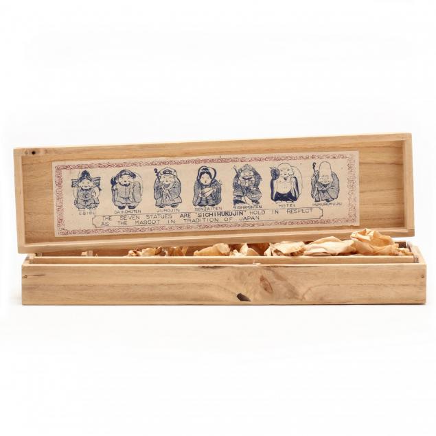 Japan, mid-20th century, set of all seven Chinese sages, comes in fitted wooden presentation box.