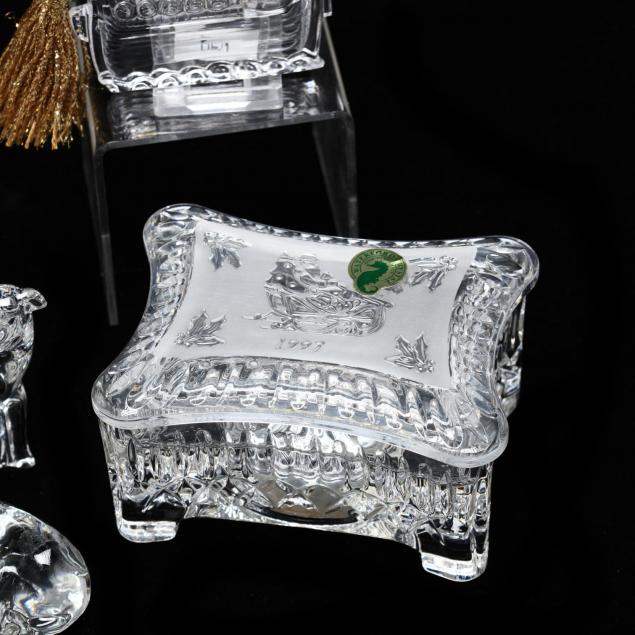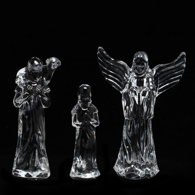 (8 pcs.) including 3pc. Nativity set, angel Gabriel figurine, two lamps, and two shepherds; also included, "Noah on the Ark" Christmas ornament and small holiday box, signed.