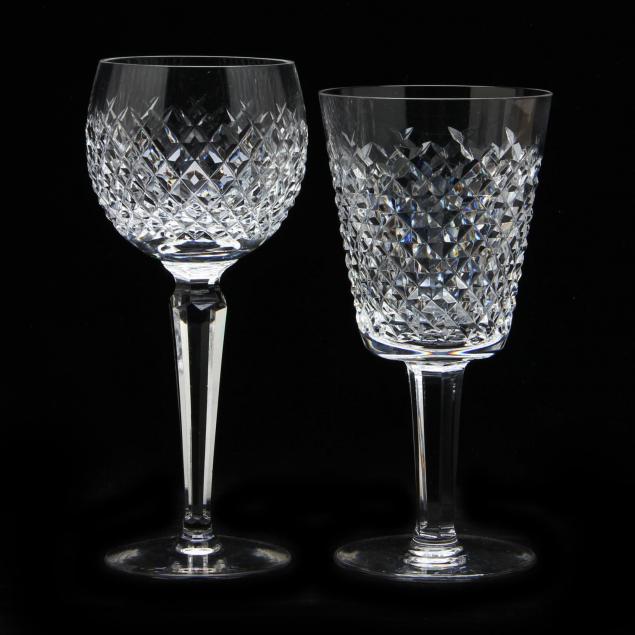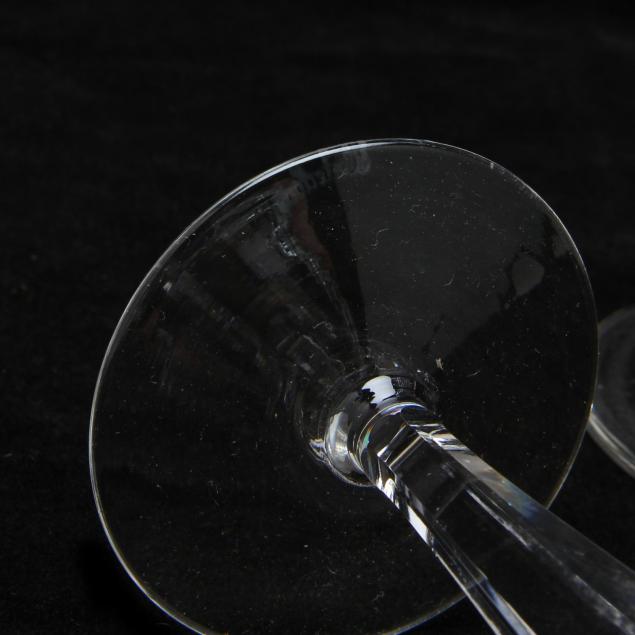 Cut crystal diamond motif; to include four water glasses and four wine hock glasses, signed.