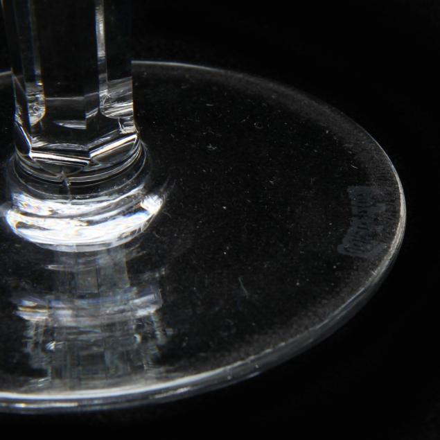 Cut diamond motif; to include four white wine glasses and four claret wine glasses, signed.