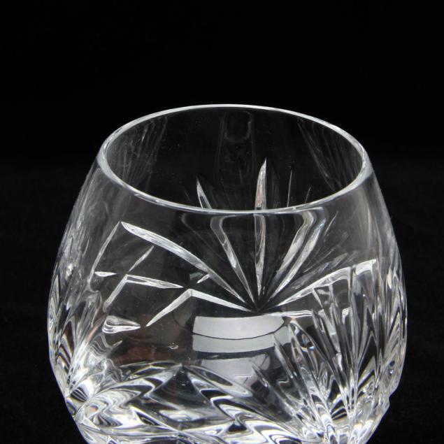 Cut crystal brandy snifters with fan motif, appear to be unsigned.