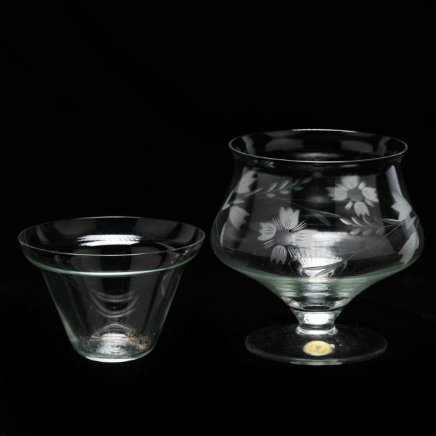 Mid to late 20th century, Bohemian, two part with floral engraved cups, labeled.
