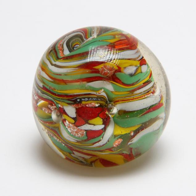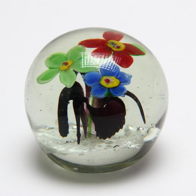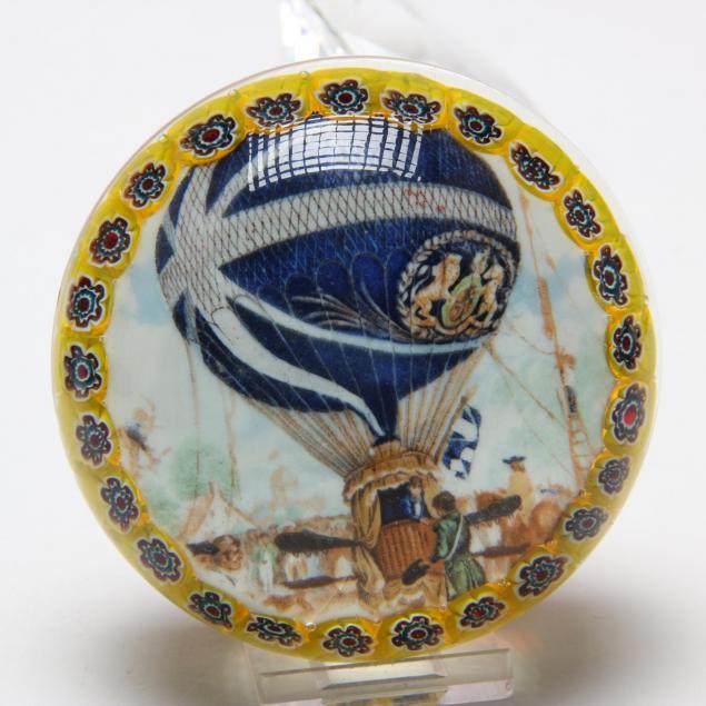 Including a Murano weight with millefiori border and transfer porcelain plaque, labeled.