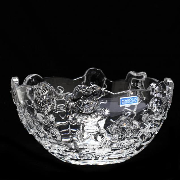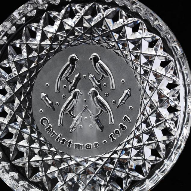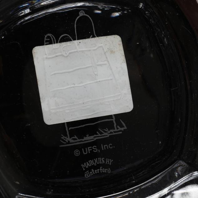 To include a signed Waterford platter depicting a ornithological scene and etched with "Christmas 1987," (.5 x 8 in.); a Marquis by Waterford "Peanuts Character Bowl," depicting scenes of the Peanuts characters, signed (4.5 x 8 in.) ; and a crystal cut diamond bowl with star cut base; appears to be unsigned, comes with original box (3.5 x 8 in.)