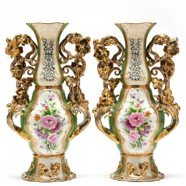 19th century, ornate gilt floral handles, with floral, gilt and green decoration, unmarked.