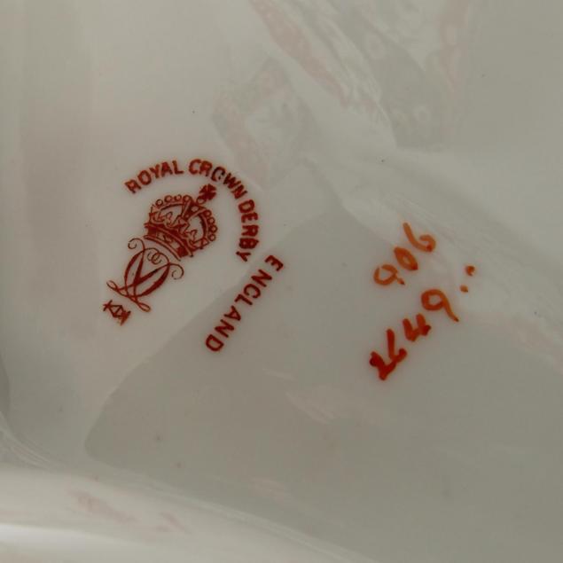 Including a 19th century Royal Crown Derby cache pot with matching under plate, an early 20th century Royal Crown Derby divided dish, and two other unmarked dishes.