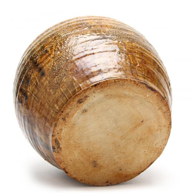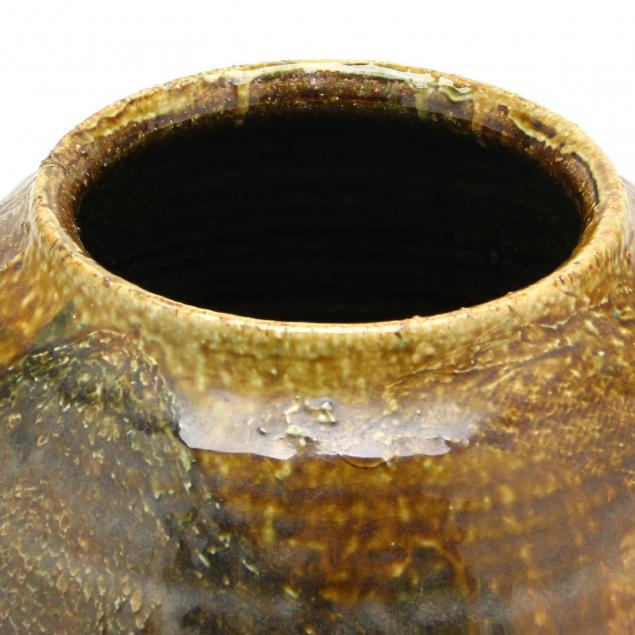 Late 20th century, relief decoration with earth tone glazes, unmarked.