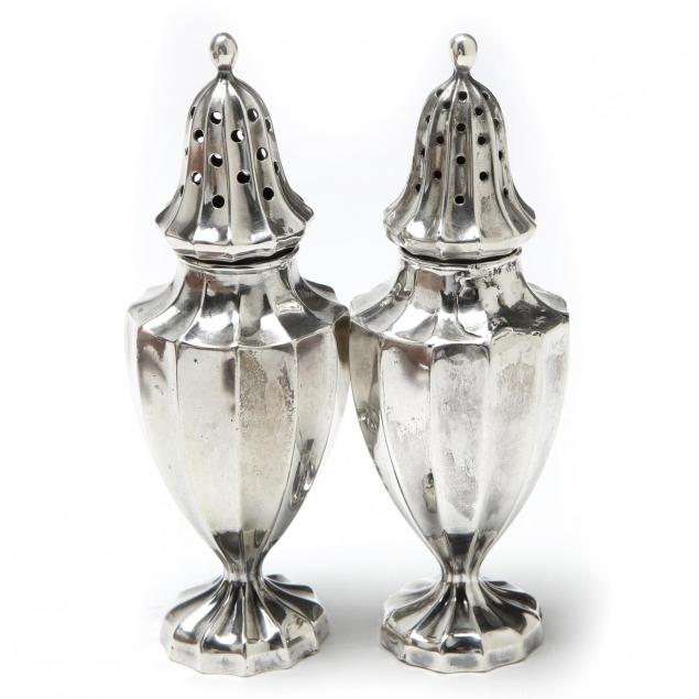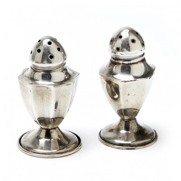 Including a pair by Whiting (4.5 in.); (11) pairs of miniature individual sized shakers (1.25 in to 1 7/8 in.); and four non-matching miniature shakers. Several with monograms.