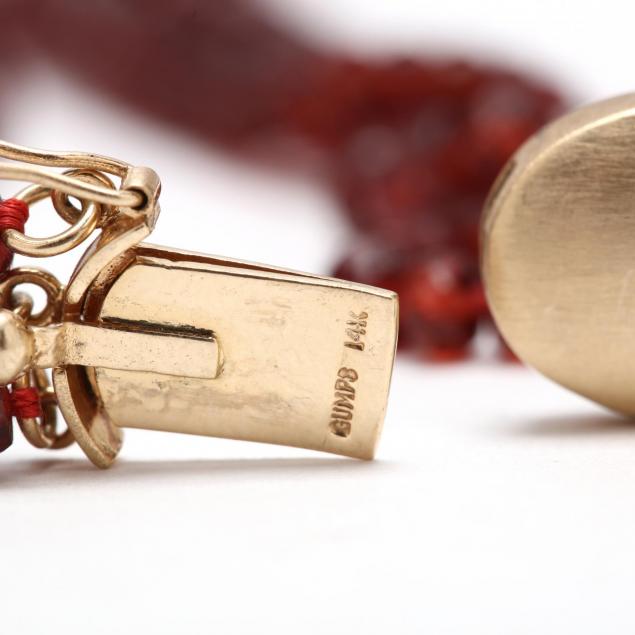 14KT Multi Strand Garnet Bead Necklace, Gump's