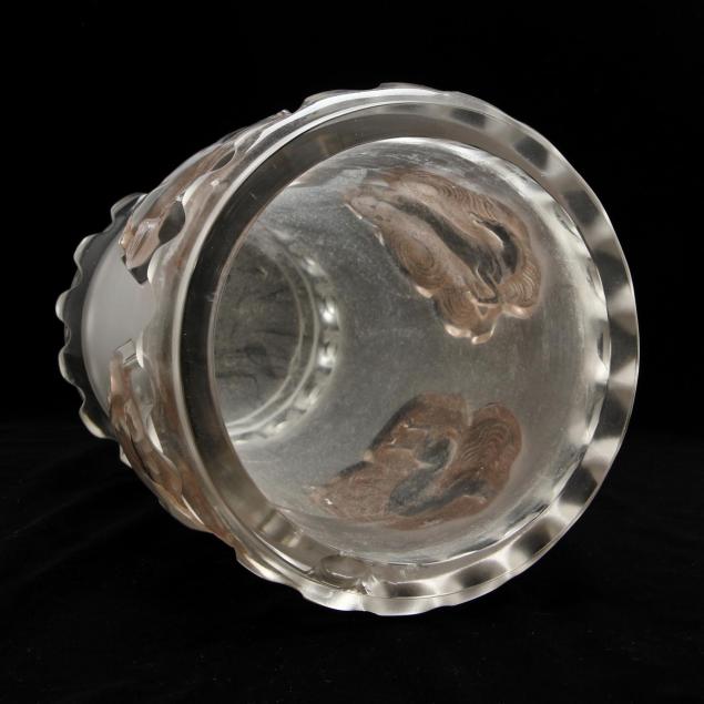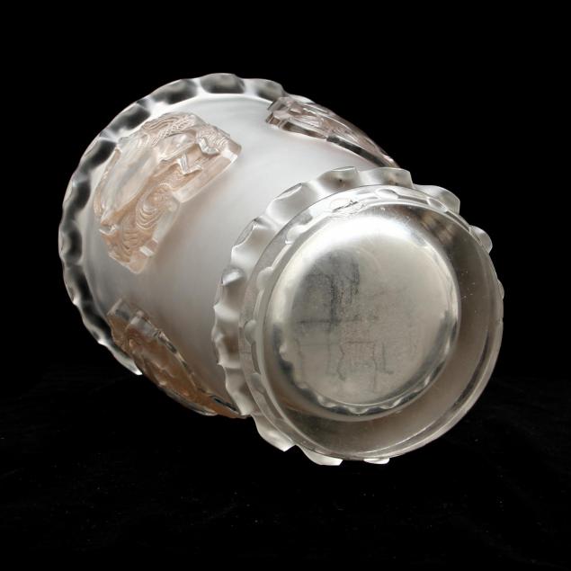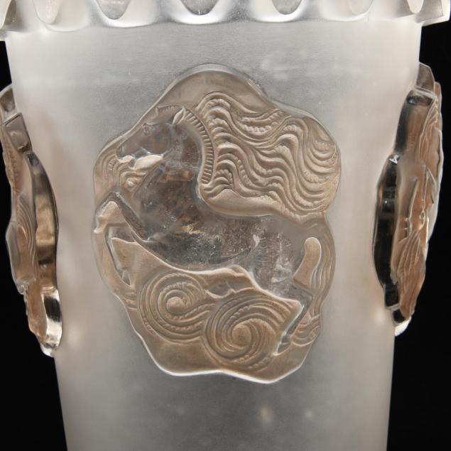 Signed to base, the body with four molded and raised medallions of rearing horses.